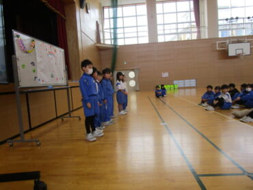 1年生は集会をやり切って満足そうな様子でした。先日2年生がおもちゃ大会に招待してくれたことを思い出し、「2年生になっても頑張るぞ」と意欲を高めました。