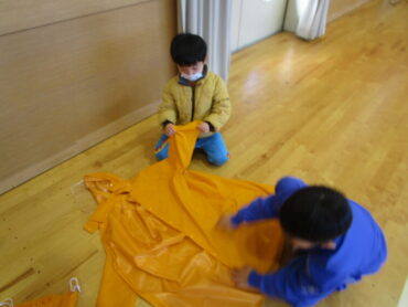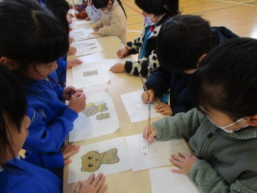 また、年長児さんも「先生見て!上手に折れたよ」「野村小学校のキャラクターは、『のむらっこ』っていうんだ」「ランドセルかっこいい」など楽しそうに1年生と関わる姿が見られました。