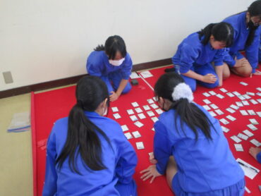 2025.12.25 4年生 5年生 6年生 冬休み万葉かるた練習が始まりました! 12月25日(木) 冬休みの万葉かるた練習が始まりました。 1月に行われる越中万葉かるた大会に向けて、子供たちは練習を頑張っています。 上の句が読まれると、札を取る音が教室に響いていました。4回戦目まで、切磋琢磨して練習に取り組んでいます。 冬休み練習は続きます。それぞれの目標を目指して頑張ってほしいと思います。