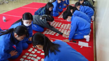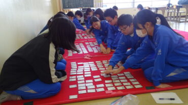 冬休み最後の日ですが、越中万葉かるた大会に出場する子供たちは、真剣に練習に励んでいました。静かな教室の中に、札を取る音がとてもよく響いていました。