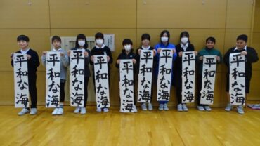 5年生は、「平和な海」と書きました。一番よく書けた作品を見せてもらいました。