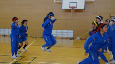 体育館では6年生が長縄跳びをしていました。2分間で140回以上跳んでいました。どのクラスもチームワークよく、声を掛け合っていました。