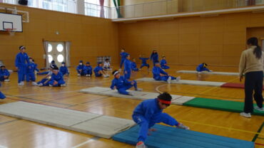 子供たちも先生の模範演技を見て、美しい姿勢で技を決めることができるように練習をしていました。6年生は卒業まで後30日だそうです。仲間と楽しい思い出をつくってほしいと思います。