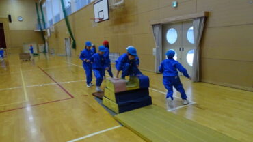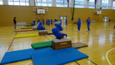 3年生は体育館で跳び箱運動をしていました。開脚跳び、抱え込み飛び、台上前転等、いろいろな技に挑戦していました。自分のレベルに合わせて跳び箱の高さを選んで練習していました。
