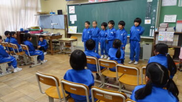 1年生は、生活科で「できるようになったこと発表会」のリハーサルをしていました。授業参観で家族の前で自信をもって発表できるように練習をしていました。