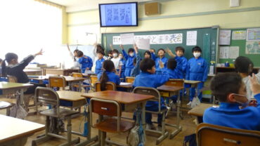 3年生は総合的な学習の時間の学習で「野村小学校の今と昔」について調べてきたことをクイズにして発表していました。