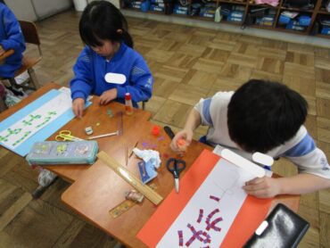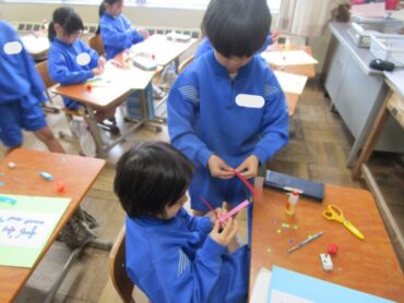 2026.2.15 NEW 2年生 2年生 卒業、入学掲示づくり 2年生は、図画工作科で卒業を迎える6年生と、来年度入学してくる1年生に向けた掲示物を製作しました。これまで、学校を支えてくれた6年生への感謝の気持ちと、新しく仲間になる1年生を温かく迎えたいという思いを込めて、子供たちは色や形、材料の特徴を生かしながら工夫して表現しました。 子供たちの中には、「6年生が笑顔になれるような作品をつくりたい!」「来年度入学してくる家族のことを思い浮かべながら、つくってみたよ!」と話す姿が見られました。 子供たちの思いが、卒業生や新入生の心に届くことを願っています。