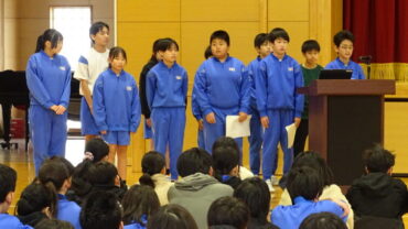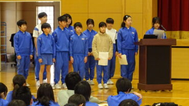運営委員会は、あいさつ運動で全校児童の挨拶への意識が高まったこと等を発表しました。環境委員会は、整理整頓大作戦で全校児童が進んで身の回りを整頓する意識が高まったこと等を発表しました。