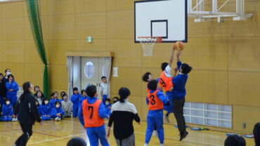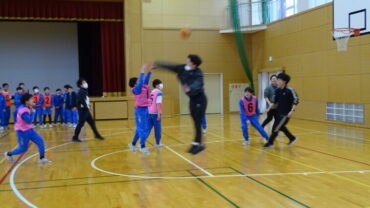 この企画の目的は、「先生も6年生も全力で楽しむこと」です。大人も子供も関係なく思い切りバスケットボールを通して友好を深めました。