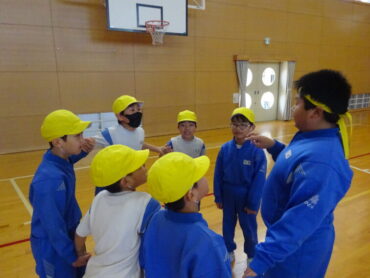 6年生が「おいで!一緒に集まろう!」「こっちにあと2人!」と呼びかけてくれました。