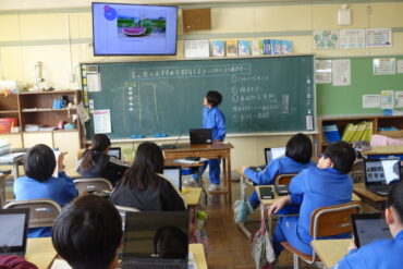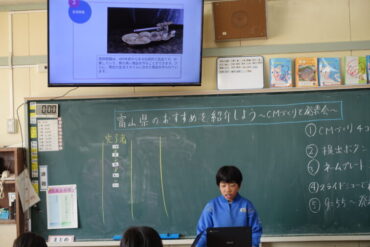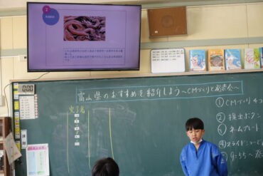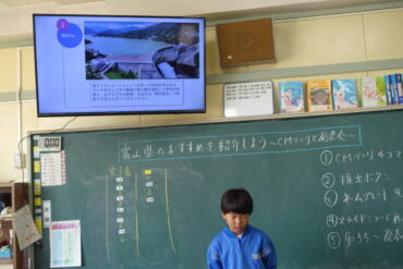 4年生は、社会科で富山県のおすすめの観光地や伝統工芸品、食べ物等をスライドにして紹介していました。