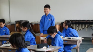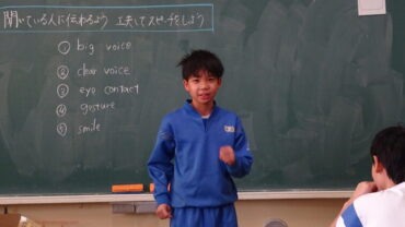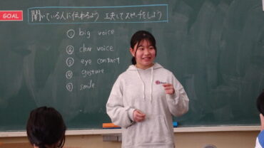 6年生は、中学生になって頑張りたい部活動や学習について英語でスピーチをしていました。
