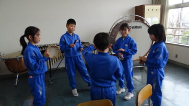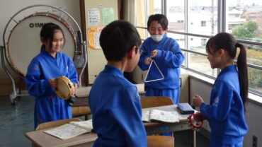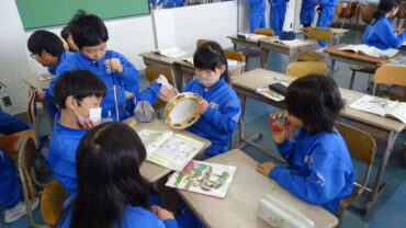 3年生は、音楽室でいろいろな楽器を使って音をつなげて音楽をつくっていました。