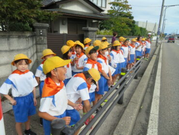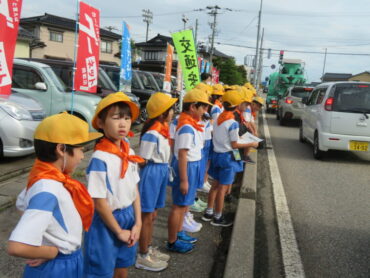 子供たちの声かけで実際にシートベルトの確認をしたり、速度を落としたりしてくださる運転手の方もいらっしゃり、交通安全を呼びかけることの大切さを実感できました。