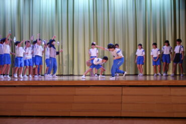 6年生は、小学校生活最後の学習発表会を成功させようと、友達と協力しながら自主的に活動を進めています。観客を感動させる演技を目指すために、毎日互いに切磋琢磨し、一生懸命練習をしています。