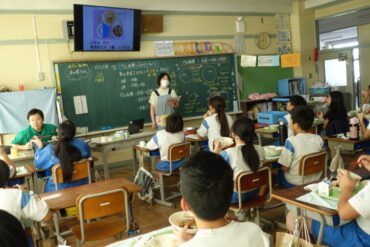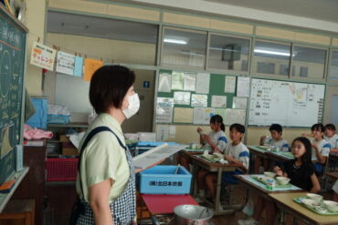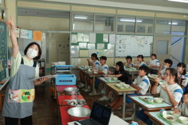 子供たちが栄養や食事のマナーについての知識を高め、自分の食生活に関心をもてるように、給食時間に栄養教諭が各教室を訪問して、「ちょこっと食育」を実施しています。