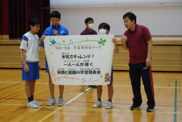 進行係は、放送原稿を読んだり、学習発表会のテーマを発表したりする練習をしていました。