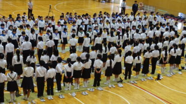 まず、両校全員で「ビリーブ」を互いに向き合って歌いました。美しい2部合唱のハーモニーが体育館に響きました。