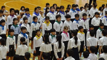 その後、野村小学校が発表をしました。「夢のつぼみ」を2部合唱で歌いました。歌詞に気持ちを込めて歌いました。