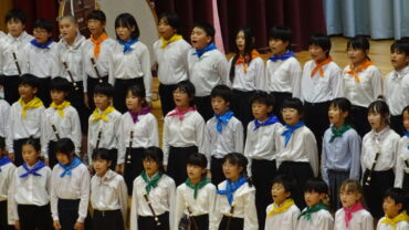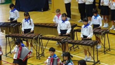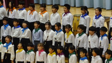 次に、高陵小学校の合奏「ケセラセラ」と合唱「声は風」を聴きました。