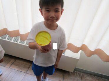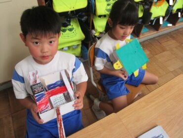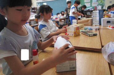 箱の形をいかして、箱を楽しく変身させました。子供たちは自分の持ってきた箱から、