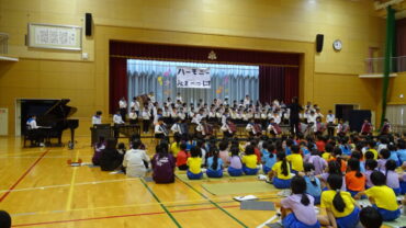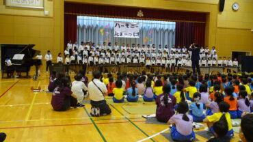 5年生は、音楽交流会で披露した合唱と合奏を披露しました。素敵なハーモニーと合奏曲の音色に野村っ子の心は吸い込まれました。