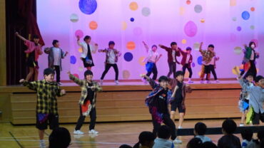 4年生は、1970年代から今までの年代の曲をダンスで表現しました。ちびっこダンサーたちは衣装もダンスもかっこよく決まっていました。