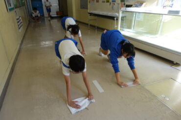 ステージ発表会場の体育館だけでなく、バザー会場や廊下、玄関等、たくさんのお客さんを迎えるために、掃除をしました。