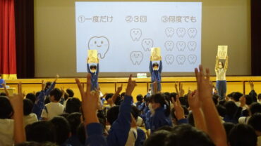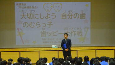 5・6年生の保健委員の発表では、歯と口に関するクイズと歯科検診の結果、委員会の活動報告が行われました。