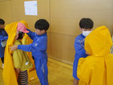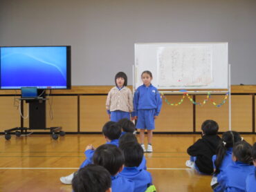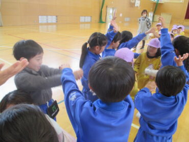 年長児さんに楽しんでもらいたい、自分達のかっこいい姿を見せたいと取り組んだなかよし集会。堂々と言葉を話したり、優しく笑顔で教えたりしながら交流しました。