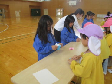 「たくさん体験コーナーに来てくれて嬉しかったよ」「年長さんが嬉しそうだったから、自分も嬉しい気持ちになった!」「自分たちの力で交流会をやりきることができた!」と達成感でいっぱいでした。