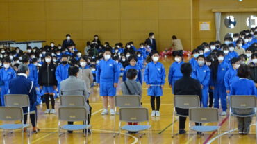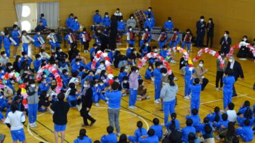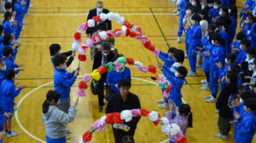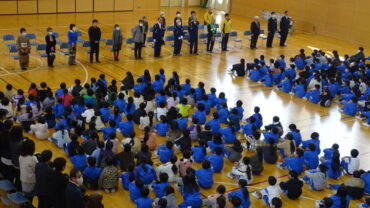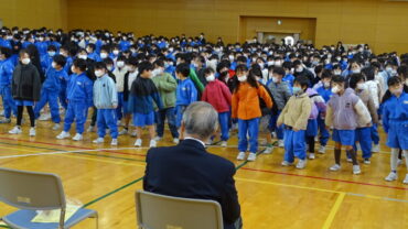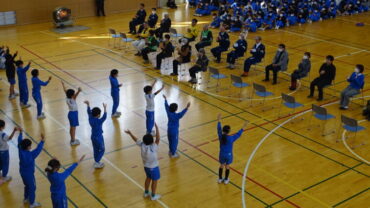 インフルエンザが流行していることもあり、全校で「ありがとうの花」の曲に合わせて、体を揺らしながら心の中でありがとうの気持ちを込めて歌いました。