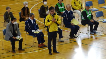 児童代表や3年生の子供たちが、「雨の日も風の日も雪の日も暑い日もいつも見守ってくださってありがとうございます」と挨拶や呼びかけをしました。