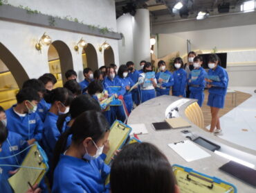 学んだことはしっかりメモを取って聞いていました。いつもテレビで見ている番組のセットや撮影カメラの大きさに驚いていました。