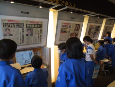 この日学んだことを社会科の時間に更に深めていきたいと思っています。たくさんのことを教えてくださった富山テレビ局の方々や北日本新聞越中座の方々、ありがとうございました。