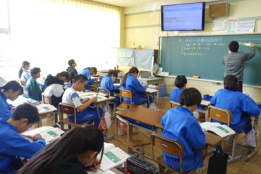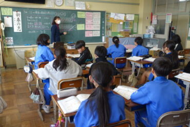 1時間目の授業の様子です。6年生は算数の授業中でした。反比例にはどのような性質があるのか表を見ながら確かめていました。