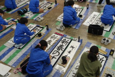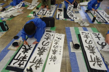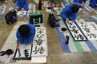 1枚を書き終えた6年生にインタビューしてみると、「文字のバランスに気を付けたい」「右はらいの筆遣いに気を付けたい」など、これから練習していく課題が見付ったようです。