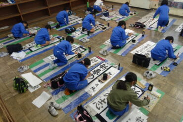 6時間目に書初めの練習をしました。この日は、1年ぶりの書初め練習でした。「新春の志」と手本をじっくり見て書きました。