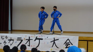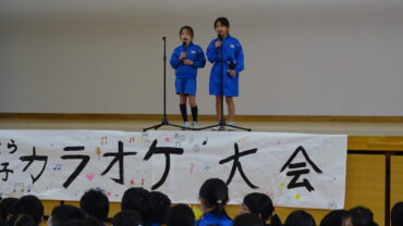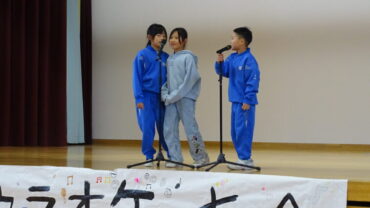 長休み時間に「野村っ子カラオケ大会」の3年生大会前半の部がありました。放送委員会が司会進行をしました。