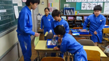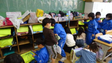 環境委員に教えてもらいながら片付けていました。整理整頓するととても気持ちがよいものです。