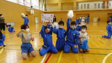 会場の子供たちも看板やポンポンを振って、「頑張れ〜」と応援していました。