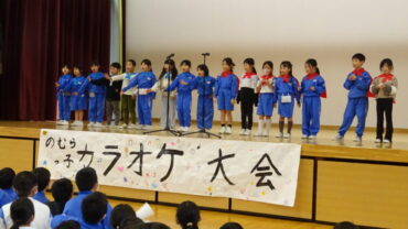 野村っ子タイム(ロングタイム昼休み)に「野村っ子カラオケ大会」1年生、3年生後半の部がありました。司会進行は放送委員会です。