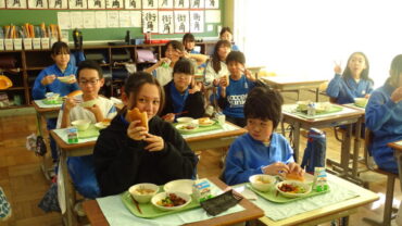 いつもと違った形態で給食を食べている教室もありました。「この日は特別、みんなの顔を見て食べたいな」という子供たちのリクエストで輪になって楽しく食べていました。